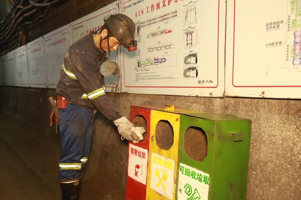 “自從上海推行垃圾分類后,我們就受此啟發(fā),在井下主要巷道和崗點(diǎn)、施工現(xiàn)場開展‘垃圾分類我先行’活動,為咱職工創(chuàng)造一個(gè)干凈整潔的工作環(huán)境?!本C采二隊(duì)隊(duì)長高小虎高興的說道。