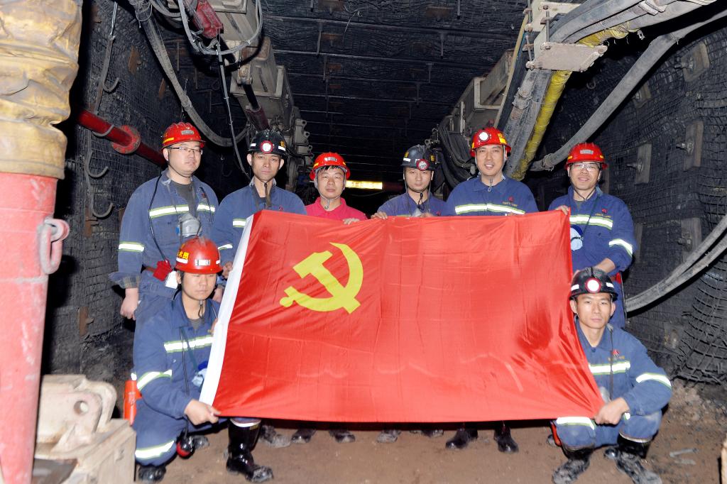 “我志愿加入中國共產(chǎn)黨,擁護黨的綱領(lǐng),遵守黨的章程,履行黨員義務(wù)……”9月28日早上9點,一號煤礦綜采一隊15名黨員身著整齊工服,胸佩黨徽,面對鮮紅黨旗莊嚴(yán)地舉起右手重溫入黨誓詞,鏗將有力的入黨誓詞在1006智能化綜采工作面上久久回蕩,一場以“守初心、擔(dān)使命、做表率、保安全”為主題的黨日活動正在有序開展。