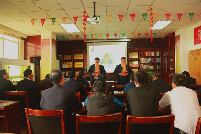 11月7日下午四點班,二號煤礦掘進一隊班前會上該礦通風部業(yè)務骨干趙軍平正在給職工演示ZYX30隔絕式壓縮氧氣自救器佩戴及使用方法。