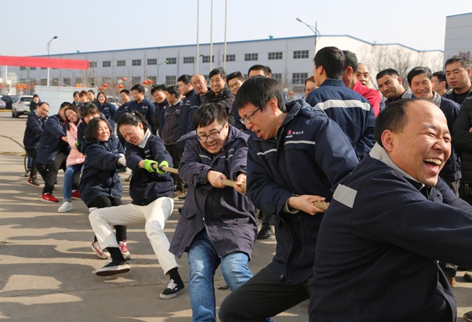 “加油!加油!”在機電公司辦公樓前的空地上,只見數(shù)十人在鼓勁吶喊,只見參賽職工緊握大麻繩,身體努力向后傾,渾身肌肉緊繃,手上筋脈突兀,雙方的拉拉隊員也是紅著臉扯著脖子齊聲吶喊助威,現(xiàn)場好不熱鬧。