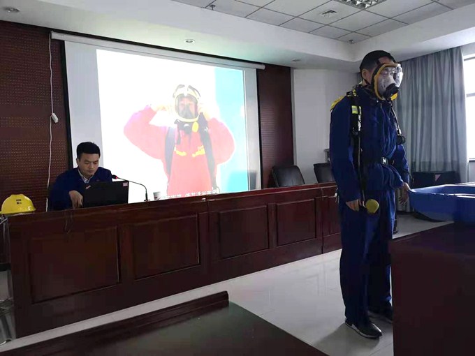 “正壓式呼吸器是一種自給開(kāi)放式空氣呼吸器,具有重量輕、體積小、佩帶舒適、使用方便、性能穩(wěn)定等特點(diǎn)。下面請(qǐng)我們的演示人員就其具體使用方法為大家進(jìn)行詳細(xì)展示……”