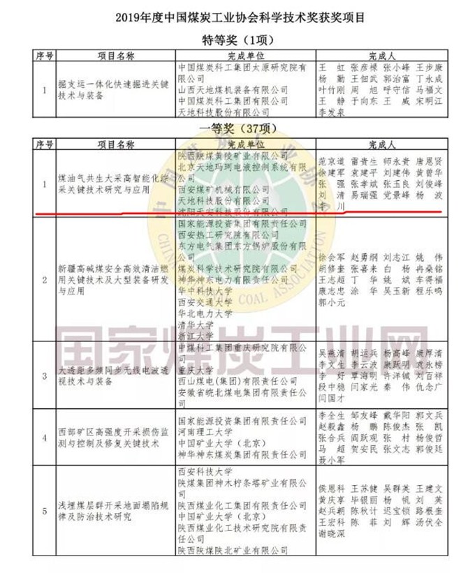 根據《中華人民共和國科學技術進步法》和《中國煤炭工業(yè)協會科學技術獎勵辦法》,中國煤炭工業(yè)協會、中國煤炭學會組織開展了2019年度“中國煤炭工業(yè)協會科學技術獎”評審活動,共評出獲獎項目304項,其中,特等獎1項,一等獎37項,二等獎116項,三等獎150項。其中公司《煤油氣共生大采高智能化綜采關鍵技術研究與應用》項目榮獲2019年科技創(chuàng)新成果一等獎,科技創(chuàng)新工作取得了豐碩的成果。