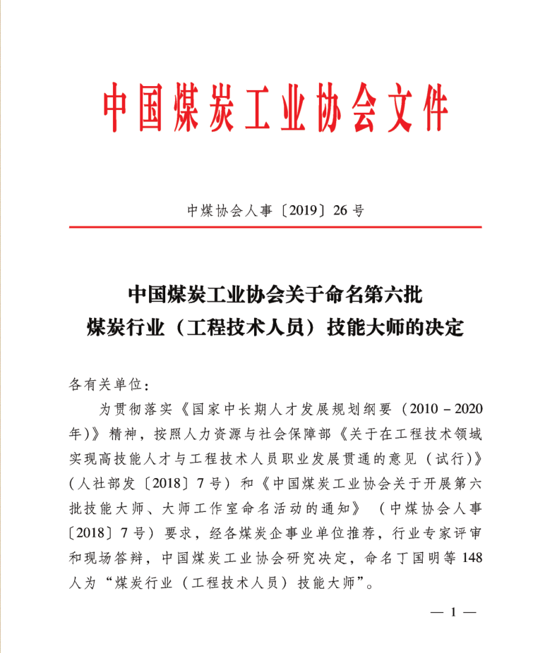 本次申報(bào)命名活動,是為貫徹落實(shí)《國家中長期人才發(fā)展規(guī)劃綱要(2010-2020年)》精神,按照人力資源和社會保障部《關(guān)于在工程技術(shù)領(lǐng)域?qū)崿F(xiàn)技能人才與工程技術(shù)人員職業(yè)發(fā)展貫通的意見(試行)》(人社部發(fā)〔2018〕7號)文件要求,經(jīng)各煤炭企事業(yè)單位推薦,由中國煤炭工業(yè)協(xié)會組織行業(yè)專家評審和現(xiàn)場答辯,并命名的“煤炭行業(yè)(工程技術(shù)人員)技能大師”。