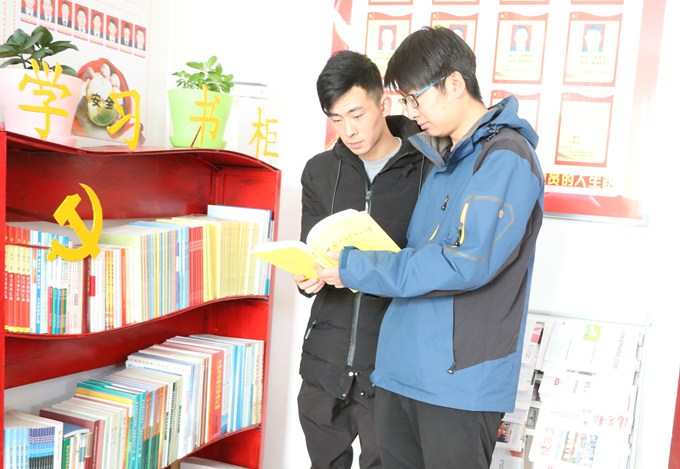 “這本書你看完了叫我看下,我家里還有幾本書不錯(cuò),準(zhǔn)備明天拿來放咱書架上和大家分享?!?1月26日,瑞能煤業(yè)運(yùn)輸隊(duì)周五黨員活動(dòng)室內(nèi),黨員朱艷東和職工李博博在一起分享讀書……