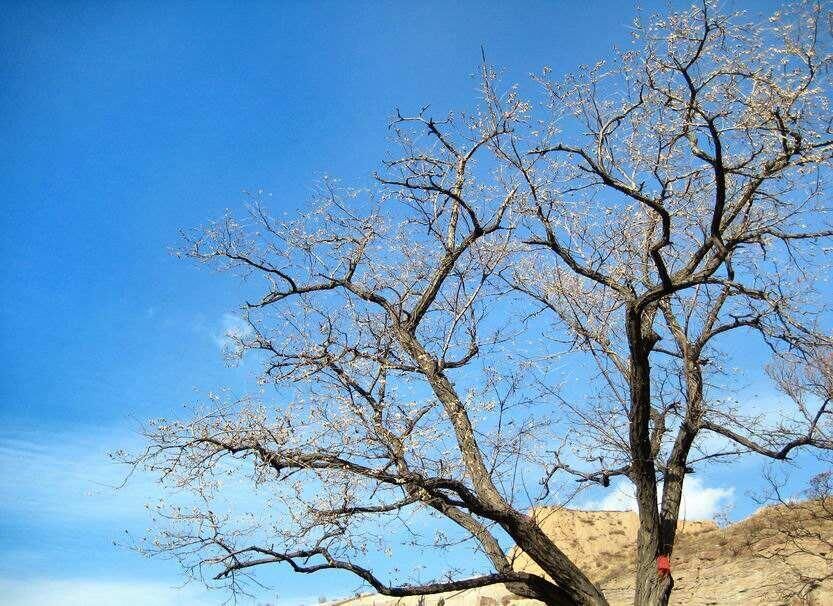 我喜歡這個純粹的季節(jié),尤其是絕美的晴天。強(qiáng)烈的陽光中浸透著纏綿,卻并不失本質(zhì)的靜美,肆意地散射在每一個角落。任憑那狂風(fēng)呼嘯而過,荒草搖曳,甚至隱約可以聽到水流與冰面奏響的小樂曲。黃土高坡上的一切,便在這冬日里活躍了起來,湛藍(lán)的天空中浮著兩三片云朵,柔緩似夢。