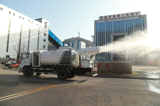 據(jù)二號煤礦行政部負(fù)責(zé)人郭立介紹,這種抑塵車通過高壓泵將水箱內(nèi)的水噴出,而在“炮筒”內(nèi)有高速旋轉(zhuǎn)的風(fēng)扇,水柱通過風(fēng)扇時,變作水霧被噴射到空氣中。水霧極為細(xì)小,可以分解淡化空氣中的顆粒濃度、有效降低礦區(qū)揚塵污染,并且將漂浮在空氣中的污染顆粒物迅速避降地面,達到清潔凈化空氣的效果。