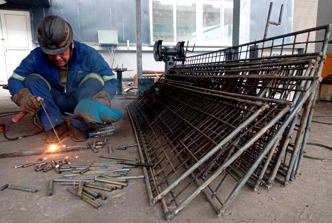 “這些鋼筋全部來(lái)自井下廢舊材料,打磨除銹后可以加工成皮帶防護(hù)網(wǎng)?!眲?chuàng)新能手王杰正在利用廢舊材料加工皮帶防護(hù)網(wǎng)。