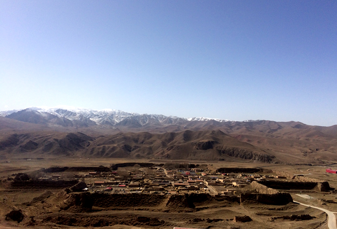 從夏河縣出發(fā),一路向北約約四十公里,翻越一座大山后到達(dá)甘加草原,如今的這里,漢、回、臧各民族的聚集一堂,和平共處,成群的牛羊如珠般點(diǎn)綴在嫩綠的草原上,到達(dá)甘加鄉(xiāng)后朝東,沿著央曲河向東,大約三公里就到達(dá)八角城下,城址位于央曲河谷北岸的一座高臺(tái)地之上,保存完好,城墻高約14米,用夯土夯砌而成,四面各開(kāi)一門,城門為兩重,第一重之內(nèi)是一個(gè)方形的甕城,穿過(guò)甕城便可進(jìn)入城中。八角城城墻周長(zhǎng)約兩公里,頂部寬約6米,夯土層清晰可見(jiàn),在城外的東、西、北三面還各有一個(gè)巨大的墩臺(tái)遺址,是古代西域屯兵時(shí)期的特殊建筑,主要起到瞭望警戒作用,從南門出城,不到三十米便是央曲河,城北約一公里是險(xiǎn)如刀削一般的白石崖,由此可見(jiàn),八角城在筑城的選址上深思熟慮,背靠大山,南傍激流,易守難攻。但為何八角城會(huì)有呈現(xiàn)出空心十字狀的奇特外形,據(jù)城中居民介紹,他們的祖先來(lái)自西域,這種筑城風(fēng)格是他們祖先從西域帶來(lái),并結(jié)合了東方的在筑城經(jīng)驗(yàn)而成。