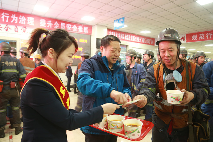 “辛苦了,吃碗水餃暖暖身子。”“下井要注意安全!”一碗碗餃子、一句句叮嚀的話語(yǔ)讓堅(jiān)守在一線崗位的職工們感受到了來(lái)自企業(yè)的溫暖與關(guān)心。大家紛紛表示:一定時(shí)刻牢記安全規(guī)程,按章作業(yè),不做“三違”人,不干“三違”事,高高興興上班,安安全全生產(chǎn),平平安安回家。(劉 青)