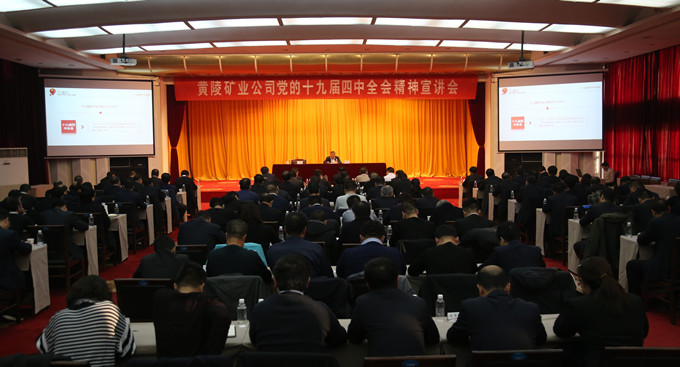 12月25日,公司在游泳館三樓會議室召開黨的十九屆四中全會精神宣講會。公司黨委書記、董事長雷貴生作專題宣講輔導,各基層單位黨政正職及公司機關副科級以上黨員干部聆聽了宣講。
