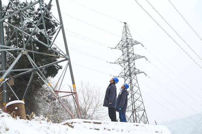 “線路絕緣子上的覆雪易融化,晚上有可能結(jié)冰,登記好,明天早上再來檢查?!?月6日早上,機(jī)電公司線路維護(hù)班班長楊華帶著陳世鵬來到魯花35千伏輸電線路2號鐵塔附近,查看冬雪天氣下線路安全運(yùn)行情況。