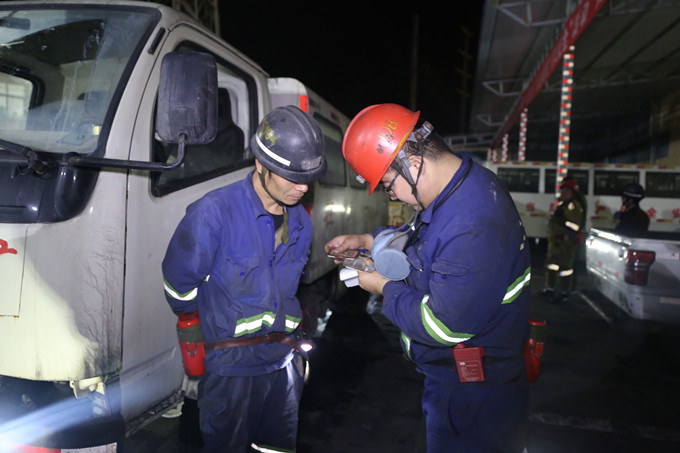 1月2日,晚上9點(diǎn),在二號(hào)煤礦井口候車室,“零點(diǎn)行動(dòng)”安全檢查小分隊(duì)整裝入井,開(kāi)展安全隱患排查。