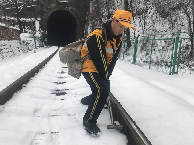 “軍博,線路一切正常,今天下雪注意安全??!”14日夜班巡道工呂民娃對張軍博叮囑道。此時(shí),張師傅從口袋摸出手機(jī)看了看時(shí)間,上午9時(shí)30分。