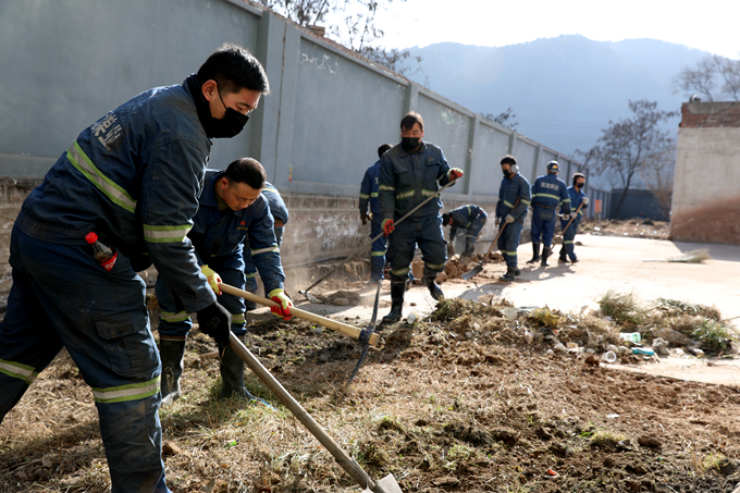 經(jīng)過一上午辛勤的勞動,家屬區(qū)的水溝垃圾雜物等被清理干凈,草坪也被平整好,院內(nèi)煥然一新。