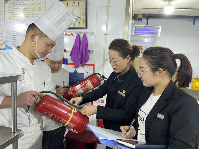 廚房檢查中,針對(duì)廚房食品衛(wèi)生、地面、收碗臺(tái)、泔水桶、門窗玻璃、防蠅設(shè)施是否符合規(guī)范;手持滅火器是否能正常使用;電器插座插頭是否完好,運(yùn)作是否正常;廚房用火有無(wú)安全隱患;廚房工作人員在崗是否違規(guī)吸煙等多方面進(jìn)行檢查。