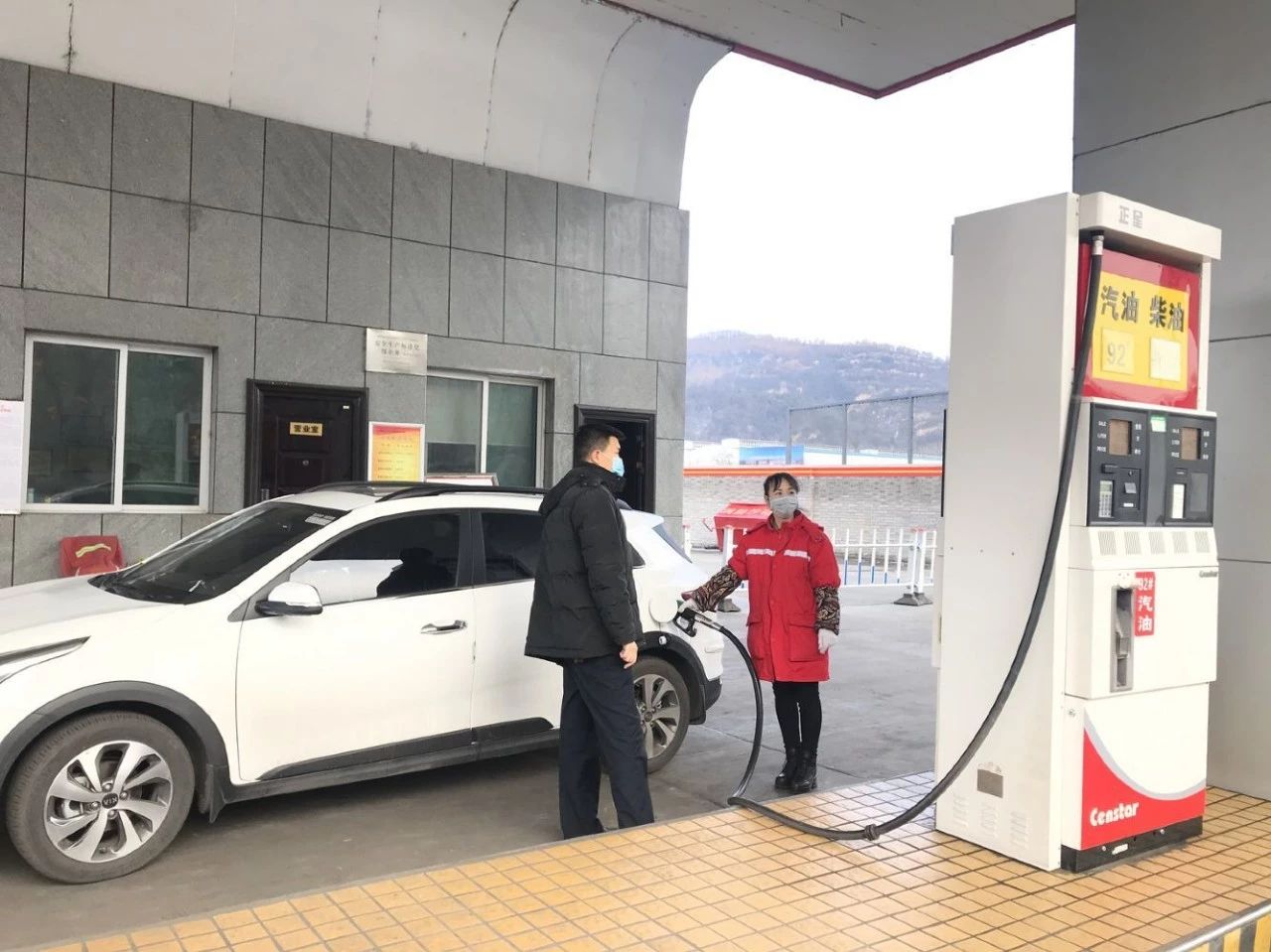加油站要求職工全部佩戴口罩上崗,每天定期監(jiān)測職工體溫,詢問家屬身體狀況,對工作區(qū)定時消毒,保障職工和客戶的健康。