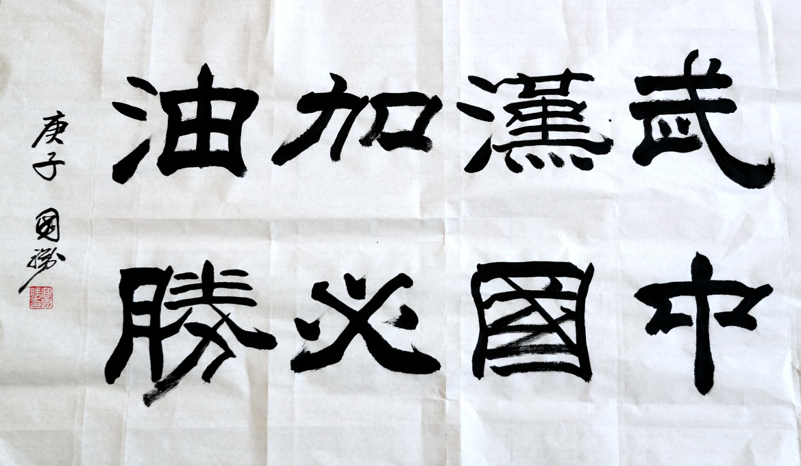 書法祝福,筆墨酣暢,字里行間寫出了黃礦職工對打贏此次戰(zhàn)“疫”的決心與信心。