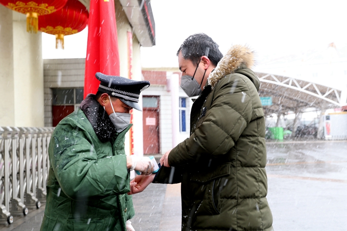 一天要站20多個小時,每天登記近七百輛車的詳細信息……作為黃陵縣高速公路地銷車輛核查登記值守人員的程建軍,放棄了本屬于他溫暖的辦公室,站在了風口尖,他的雙朵早已被凍得通紅,但他胸前的黨徽在霞光中閃閃發(fā)光。