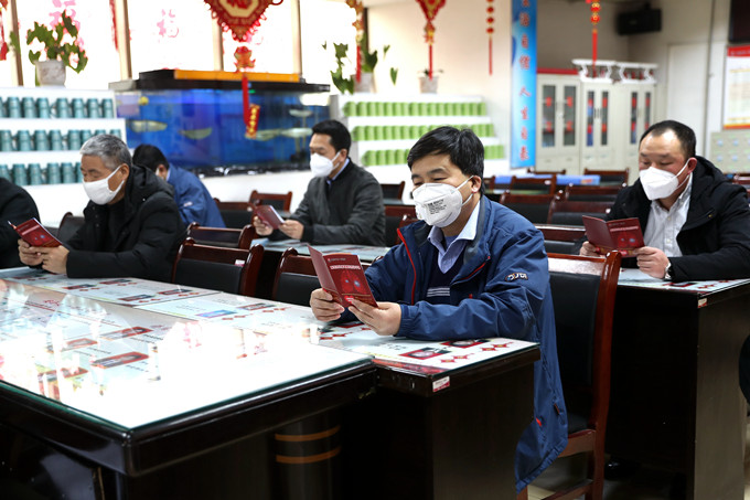 “疫”往直前就是要做好全員普及。“這本防治手冊真不錯,《新冠肺炎防治手冊》對什么是新冠肺炎、哪些人容易感染新冠肺炎、傳播的途徑、什么是密切接觸者、患者有哪些臨床表現(xiàn)等內(nèi)容作了明確釋義,特別是針對上班途中正確佩戴一次性口罩;入樓辦公測量體溫,工作中勤洗手;食堂進(jìn)餐統(tǒng)一配餐,工位就餐等內(nèi)容作了詳細(xì)說明。”2月23日,班前會上,正在組織學(xué)習(xí)的綜采一隊林家榮說道。