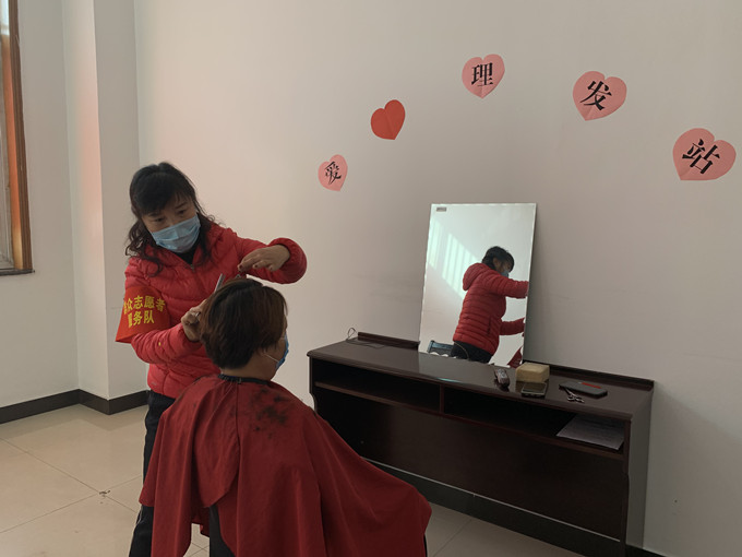 她叫馬麗,是公司的一名職工家屬。當聽到公司招募志愿者的消息時,她在第一時間填寫了申請書。當了解到她曾有過理發(fā)經(jīng)驗時,公司愛心理發(fā)站的任務就落在了她的身上。她二話沒說,行動力滿滿,短短兩個小時便布置好了:一間小屋,一把椅子,一面鏡子,一套理發(fā)工具,以及防疫期間所需的消毒酒精、一次性手套等全都布置妥當。早上九點,愛心理發(fā)站正式營業(yè),僅第一天上午,就為15名職工免費解決了“頭”等大事。