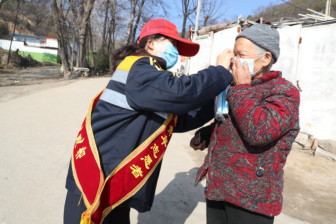 “佩戴口罩時要將上面的金屬絲捏緊......”菜籽溝村里多是留守在家的老人,受疫情影響多數(shù)子女在外不能及時返回。針對這種情況,該公司組織青年志愿者們?yōu)槊棵俗褱洗迕袼蜕?個口罩及《新型冠狀病毒感染防控知識》宣傳冊,現(xiàn)場為老人們示范了口罩的正確佩戴方法并為村民講解新型冠狀病毒感染防控知識。