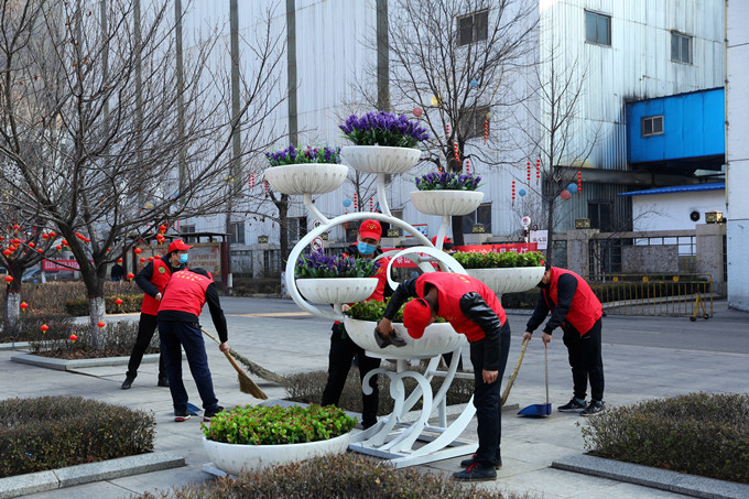 初春的早晨涼風(fēng)習(xí)習(xí),早上9點整,志愿者們身穿“紅馬甲”,頭戴“小紅帽”,帶上掃帚、抹布等清潔用品準(zhǔn)時來到礦區(qū)指定地點。他們有的擦景觀花壇,有的打掃廠區(qū)路面,還有的打水洗抹布。天氣涼,水也冷,可大家一起干活的勁頭一點也沒松懈。為了使櫥窗玻璃更加明亮,志愿者們還專門找來了廢舊報紙擦拭。經(jīng)過一個多小時共同“奮戰(zhàn)”,礦區(qū)內(nèi)的道路、宣傳櫥窗、路標(biāo)煥然一新。