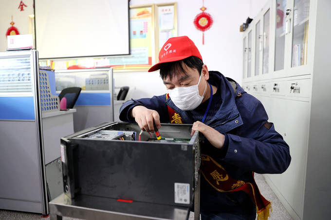 “李工,我的電腦藍(lán)屏了,開不了機(jī),你幫看看?!本蜻M(jìn)一隊(duì)職工張恒將自己電腦主機(jī)放到志愿者李立軍面前。