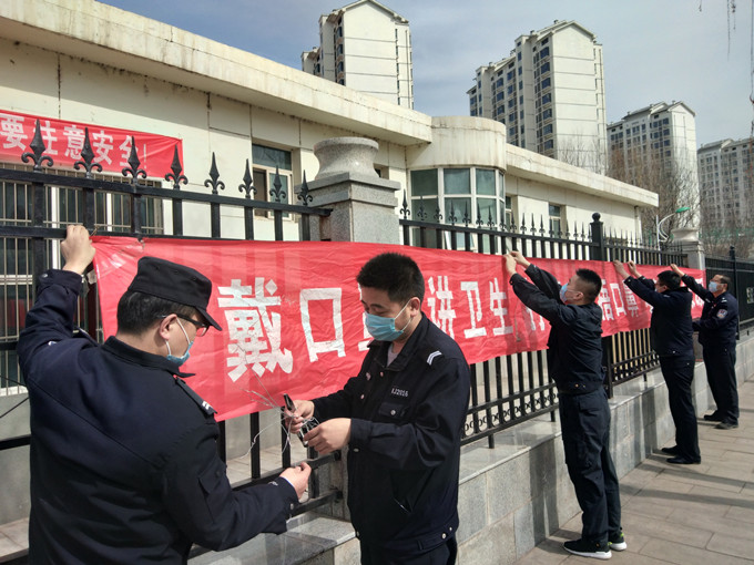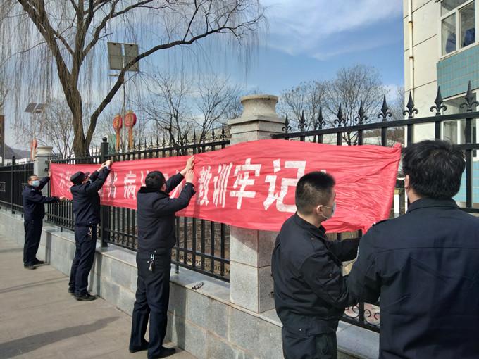 原來是安保中心志愿者在上班途中發(fā)現(xiàn)河濱路邊疫情宣傳橫幅被大風(fēng)吹破,正在進行橫幅修復(fù)工作。此次檢查橫幅三十九處,修復(fù)橫幅四處。