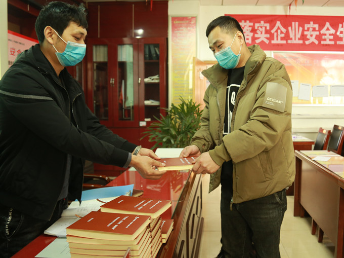 “老劉,這幾天手機上學(xué)習(xí)煤礦安全法律法規(guī),我還正愁沒有個本子記學(xué)習(xí)筆記呢,礦上就把筆記本送到咱手里了,真是太及時了?!痹谠摰V掘進一隊學(xué)習(xí)室,剛下早班的吳建衛(wèi)拿著手中安全培訓(xùn)學(xué)習(xí)筆記本高興地說道。