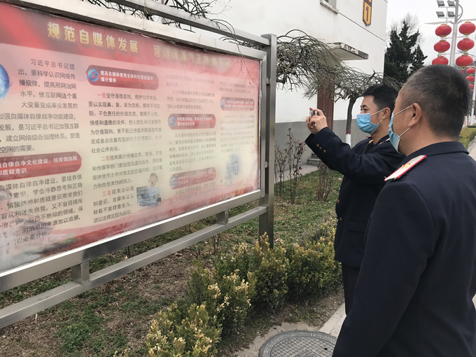 活動(dòng)中志愿者們?cè)诠緩S區(qū)內(nèi)發(fā)放文明上網(wǎng)倡議書,為職工講解了文明上網(wǎng)的基本要求和重要意義,設(shè)立普法專欄、各黨支部組織職工觀看普法視頻等多樣形式普及自媒體使用、管理等方面的法律知識(shí)。