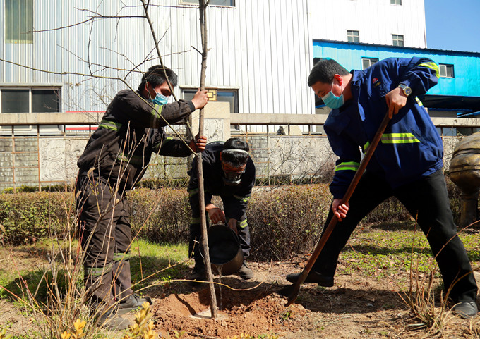 干凈整潔的生產(chǎn)生活環(huán)境是每個(gè)職工共同的期待。3月15日,趁著周末的好天氣,來(lái)自該礦選煤廠的王運(yùn)紅和幾名職工正在花園中忙碌著。揮锨鏟土、踩實(shí)澆水,歡聲笑語(yǔ)中,一顆顆整齊的樹(shù)苗屹立起來(lái)。