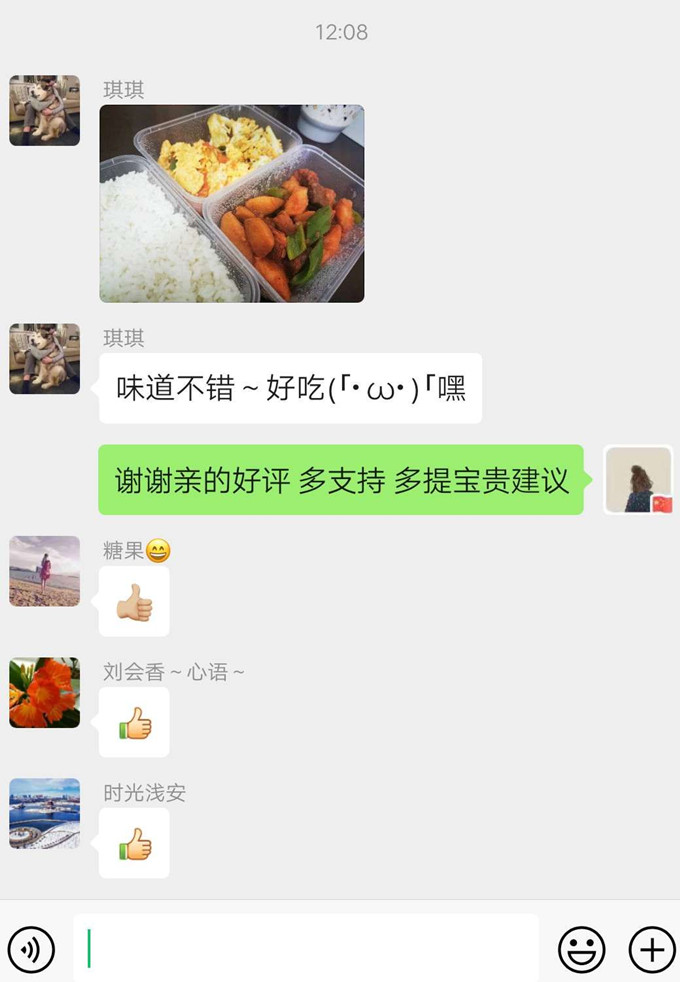 “昨天訂購飯菜非常可口,今天再為我們配送一次吧!”