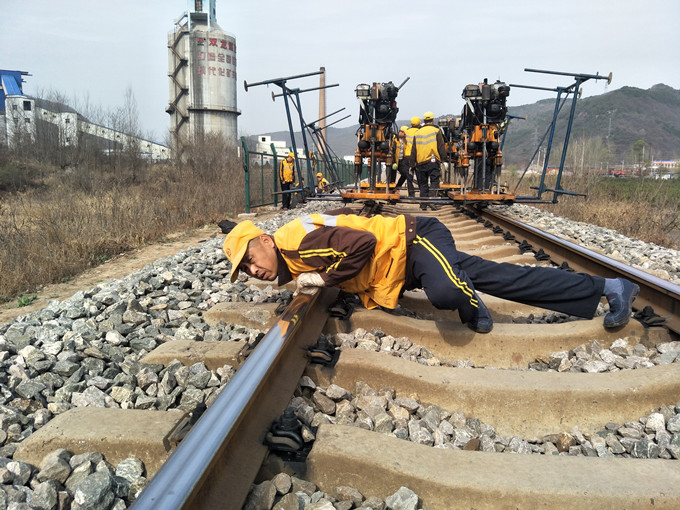 每次作業(yè)樊工長都要一次次趴在枕木上、道砟邊,全神貫注觀察著前方十幾米處的鋼軌。他的任務(wù)是指揮工友將鋼軌上的小坑小窩抬到標(biāo)準(zhǔn)高度。這工作看似輕松簡單,但趴在石渣上可就不好受了。冬天冰冷刺骨,夏天滾燙似火。在搗固機(jī)的轟鳴聲中,他一干就是7年,算起來一天少說也要趴上百次,被工友稱為“匍匐前進(jìn)的養(yǎng)路人”。