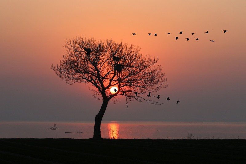 總是有種錯(cuò)覺,規(guī)律的回到故鄉(xiāng),一年一次,或者數(shù)月一次,家就還是那個(gè)家,人就還是那些人。穿上那些有些舊的衣服,就好像回到了舊日,隔絕了時(shí)間,把我們封在不愿長(zhǎng)大的舊時(shí)光里。人們都不會(huì)老,爸媽就要下班回家,同學(xué)們還在樓下等著見面聊天,崩爆米花的老爺爺還在轉(zhuǎn)著黑乎乎的筒,鄰居家的小男孩踢球又忘了吃飯。直到某一天,推倒的舊平房,關(guān)了的老店,離世了再也見不到的某某……就像一張白卷,鋪在了我們的面前,我們提起筆,呆呆的,再也完不成記憶里家的答卷。天邊褪去了最后一件霞彩,披上了薄薄的暮紗,暮色籠罩了大地,那在晚霞中錘煉的雄鷹此時(shí)也已遁入荒蕪的悠悠樹影,銷聲匿跡。遠(yuǎn)處錯(cuò)落有致的房舍炊煙裊裊,窗戶隱隱約約亮起了燈光,偶爾傳來(lái)幾聲犬吠,是誰(shuí)在暮色中邁著歸家的步伐?