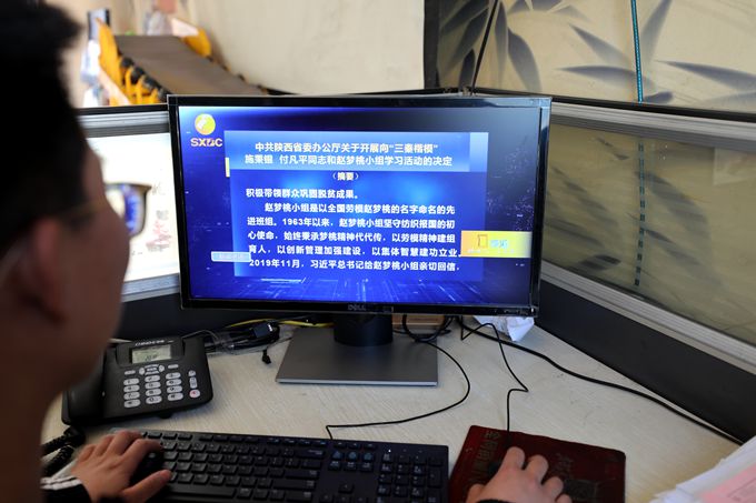 在雙龍煤業(yè)機(jī)運(yùn)隊(duì)黨支部,支部成員韋青松正在觀看“三秦楷模”施秉銀、付凡平和趙夢(mèng)桃小組感人事跡視頻。