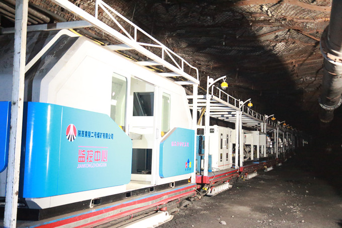 據(jù)悉,該礦此次引進的液壓邁步自移式設備列車是將設備列車與軌道組合為一體,并對軌道底部進行液壓改造,使得設備列車和軌道同步移動。移動時由車體向前推進、車體及自移軌抬升、自移軌道的拉移跟進、車體及自移軌道落完成一次移動,如此往復向前。
