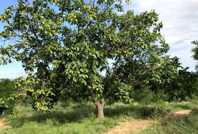 從老院子出來上個坡,是一大片的樹林,主要以洋槐樹為主,父親說,這片林子是生產(chǎn)隊栽種的,雖然與院子只有一墻之隔,但卻都屬于別的家戶。在洋槐林中,夾雜著一些大白楊和核桃以及杏樹,其中在靠北的半坡上,有一棵高大的核桃樹,從記事起,它就一直佇立在那里,四季輪回,冬去春來,如同一個固執(zhí)的老人一般,守望在這片土地上,伴隨無數(shù)的人歷經(jīng)風(fēng)霜雪雨,見證著快樂、歡笑以及悲傷和別離。
