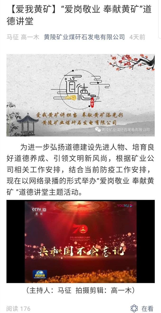 3月26日,一場以“愛崗敬業(yè) 奉獻黃礦”為主題的道德講堂活動,通過該公司微信公眾號,在“云端”與廣大職工見面。