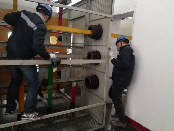 工作人員不顧寒冷,鉆進(jìn)狹小的空間內(nèi)拆除母排,幾個(gè)人配合拆卸母聯(lián)套管,另幾個(gè)人配合安裝新套管,規(guī)范的操作,嫻熟的動(dòng)作,不到三個(gè)小時(shí),母聯(lián)套管更換完畢。
