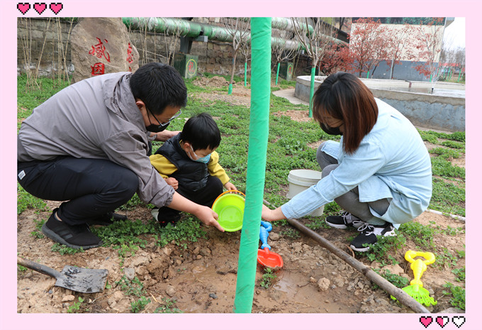 別看只是簡(jiǎn)單的親子互動(dòng),其實(shí)收獲貫穿了整個(gè)植樹過程。首先工具上的充分準(zhǔn)備就讓余洋的兒子躍躍欲試。如何選擇需要的工具,一般的鐵锨孩子太小拿不動(dòng),為了讓他能切實(shí)參與到植樹活動(dòng)中,余洋和妻子杜瑤一起從玩具箱里找出沙灘玩具的小水桶,帶著這些工具,讓兒子和他們一起植樹。