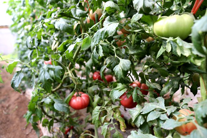 種植完成后,兩個蔬菜大棚中的蔬菜長勢喜人,西紅柿單株高度達2米以上,花期過后,掛滿了累累果實,為了盡快使其成熟,在專家的建議之下,進一步增加了光源和光照時長,達到符合西紅柿生長要求。期間,該項目得到上級單位的重視,多次組織人員深入該礦,實地對蔬菜大棚的日常管理以及土地復墾的下一步規(guī)劃和部署提出指導。