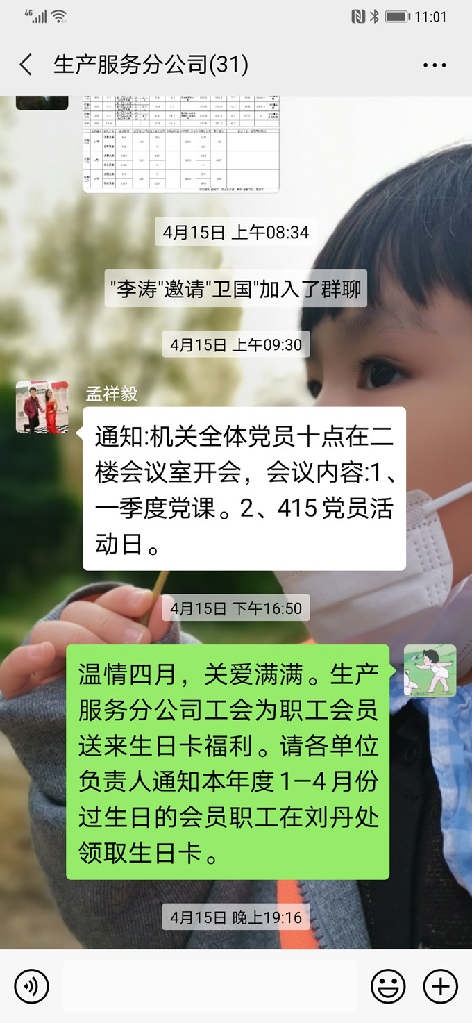 平日里,基層黨員、干部、職工和家屬協(xié)管在微信群里暢所欲言,便于各級管理干部了解職工家屬所思所想,及時為職工家屬解疑釋惑。職工家屬在生產(chǎn)、生活中遇到棘手問題,拍照上傳,便于不能及時到達現(xiàn)場的管理干部或工程技術(shù)員直觀地判斷原因,給予解答。