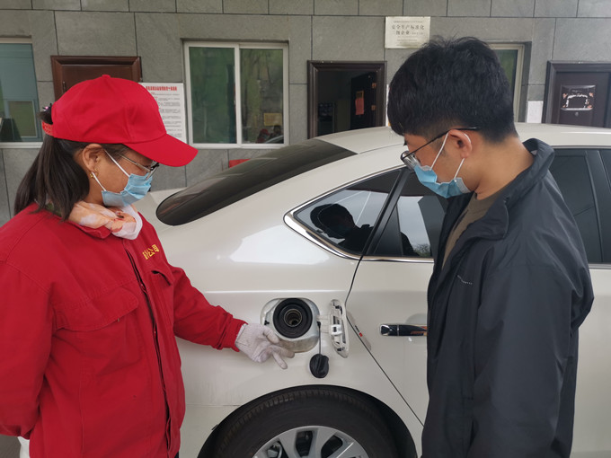 司機(jī)是一位年輕小伙,開(kāi)著一輛嶄新的小轎車(chē),“您好,師傅,我的油箱是否在加油機(jī)這邊?”小伙坐在車(chē)?yán)飭?wèn)。