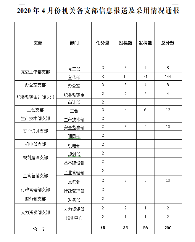 2020年4月份機關(guān)各支部信息報送及采用情況通報