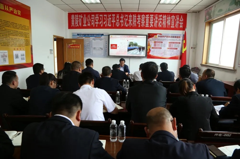 王鵬飛強調(diào),習(xí)近平總書記來陜考察重要講話視野宏闊、博大精深,不僅明確了陜西今后一個時期的發(fā)展思路,也為陜煤集團和黃陵礦業(yè)指明了今后一個時期的發(fā)展方向。全體黨員干部要深刻理解其核心要義和思想精髓,統(tǒng)一思想認識,把講話精神自覺轉(zhuǎn)化為實際行動,自覺用講話精神武裝頭腦、指導(dǎo)實踐、推動工作。