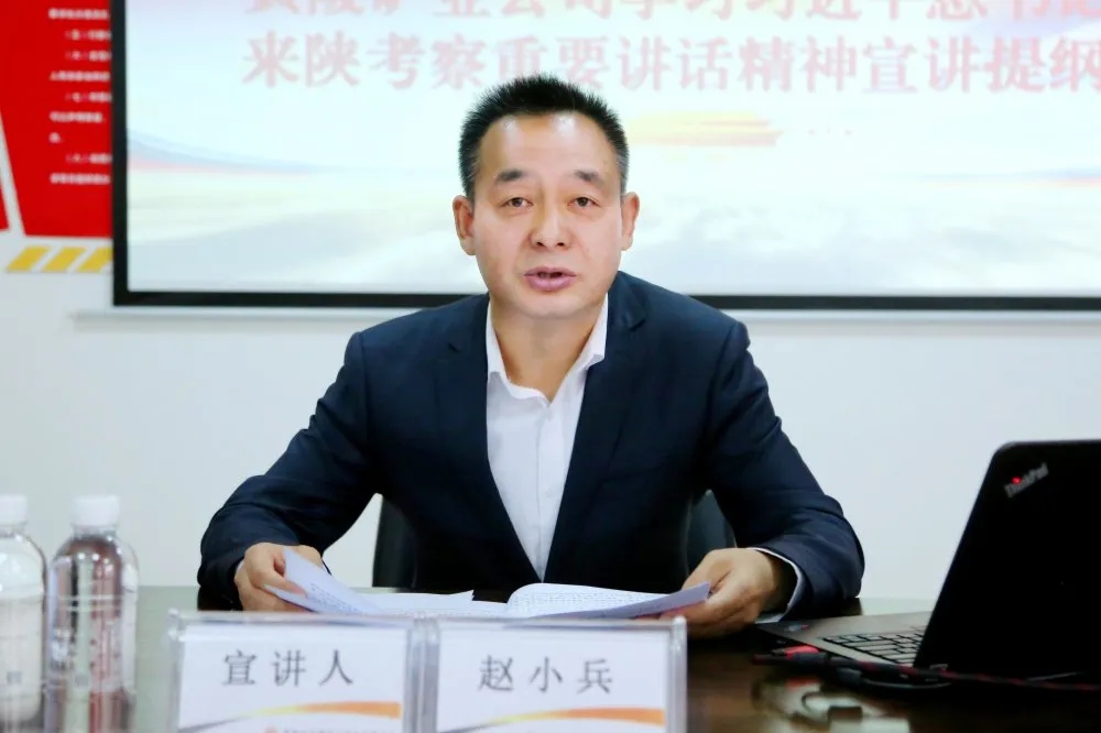 趙小兵立足礦區(qū)發(fā)展和發(fā)電公司生產(chǎn)實際,從認真學(xué)習(xí)領(lǐng)會習(xí)近平總書記來陜考察重要講話精神、深刻理解習(xí)近平總書記來陜考察重要講話的豐富內(nèi)涵和精神實質(zhì)、牢牢把握奮力譜寫陜西新時代追趕超越新篇章的總體目標、全面貫徹落實做好陜西新時代工作的五項要求等四個方面,對習(xí)近平總書記來陜重要講話精神做了詳細解讀。
