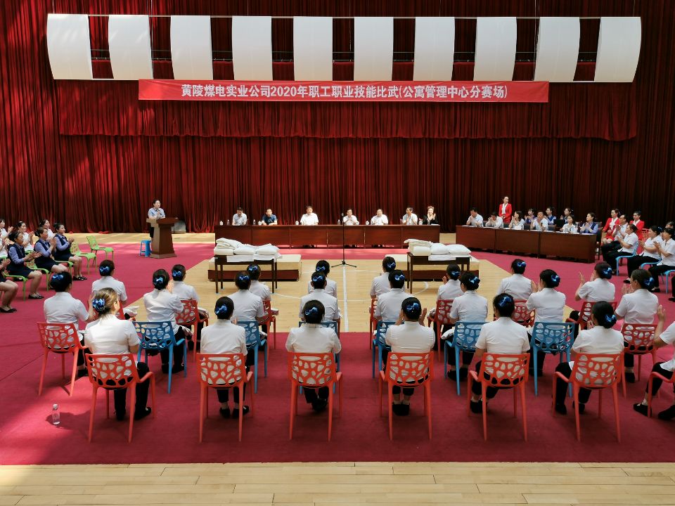 為提升服務(wù)質(zhì)量,強(qiáng)化從業(yè)人員的職業(yè)綜合素養(yǎng)。6月4日,黃陵煤電實(shí)業(yè)公司2020年職工職業(yè)技能比武在公寓分賽場如火如荼地開展。該公司相關(guān)領(lǐng)導(dǎo)和公寓員工共100余人觀看了比賽。