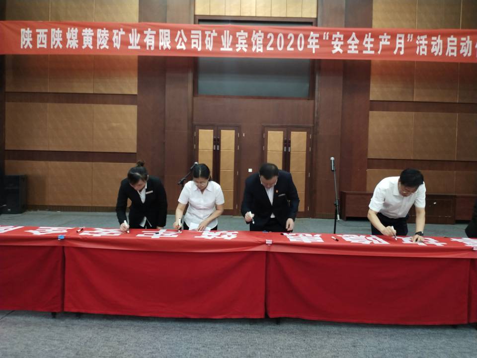 6月3日,礦業(yè)賓館全體干部職工參加了“安全生產(chǎn)月”活動啟動儀式,大家舉起右手,以飽滿昂揚的精神狀態(tài)整齊列隊,莊嚴(yán)宣誓,并在橫幅上簽字,寫下安全承諾。