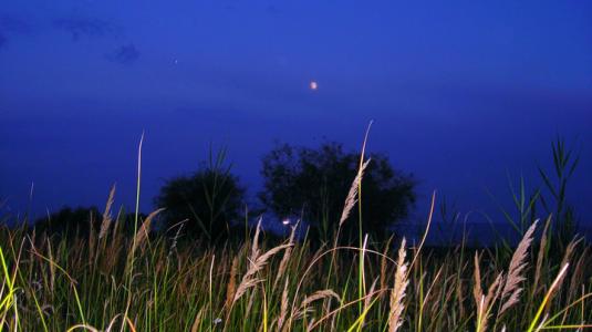 天還沒有完全黑下來的時候,一輪弦月便迫不及待的從東山嶺上探出了頭,嬌羞而又婉約,似乎想將著一切的美好看的更清楚,可偏偏有一些樹梢淘氣的遮住了它的目光,使它不得不緩慢的挪動,直到在大地上灑下一片皎潔。