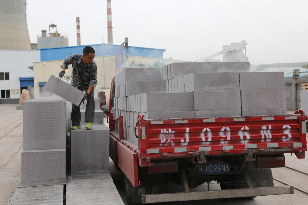 “給黃陵康崖底送呢,最近拉加氣塊的客戶很多,有時(shí)候來的晚了,加氣塊都被拉完了,黃陵那邊又要的著急,我們得趕緊裝車。”裝車師傅一邊擦著額頭上的汗水,一邊說著。
